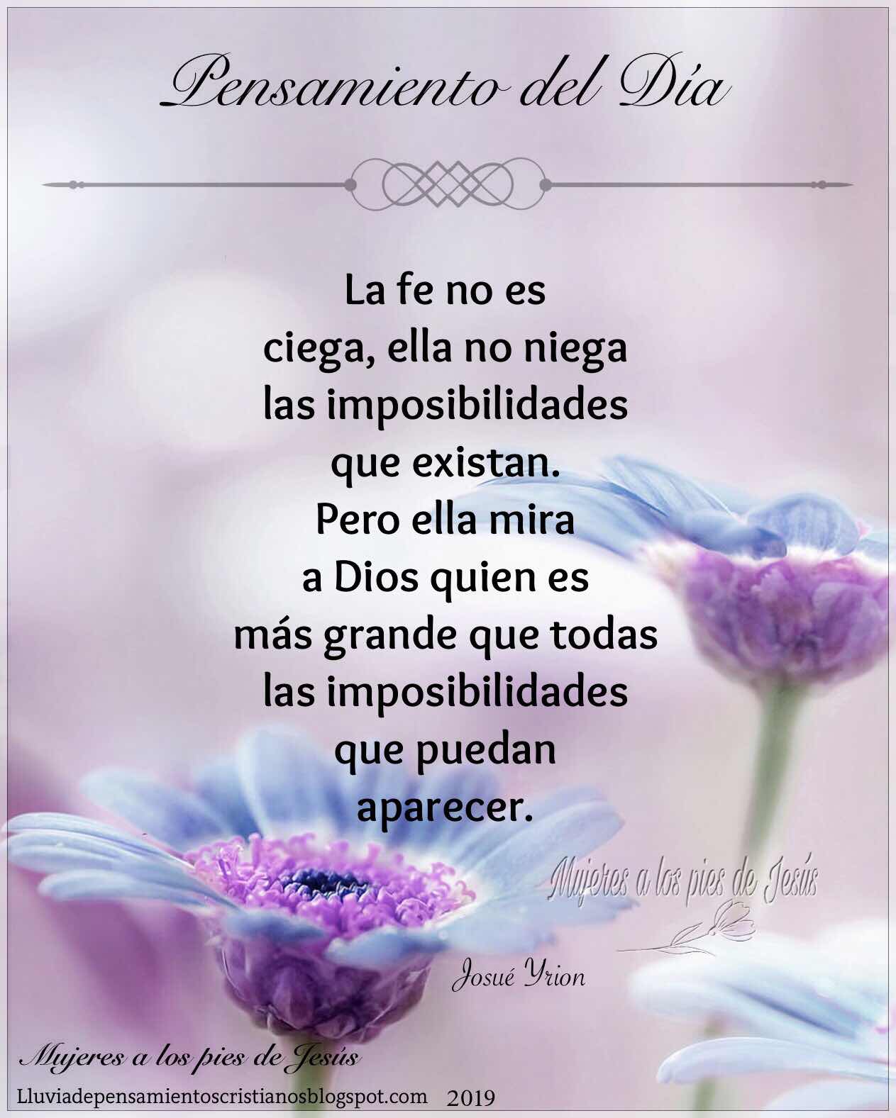 🍃La fe no es ciega, ella no niega las imposibilidades que existan. Pero ella mira a Dios quien es más grande que todas las imposibilidades que puedan aparecer.🍃