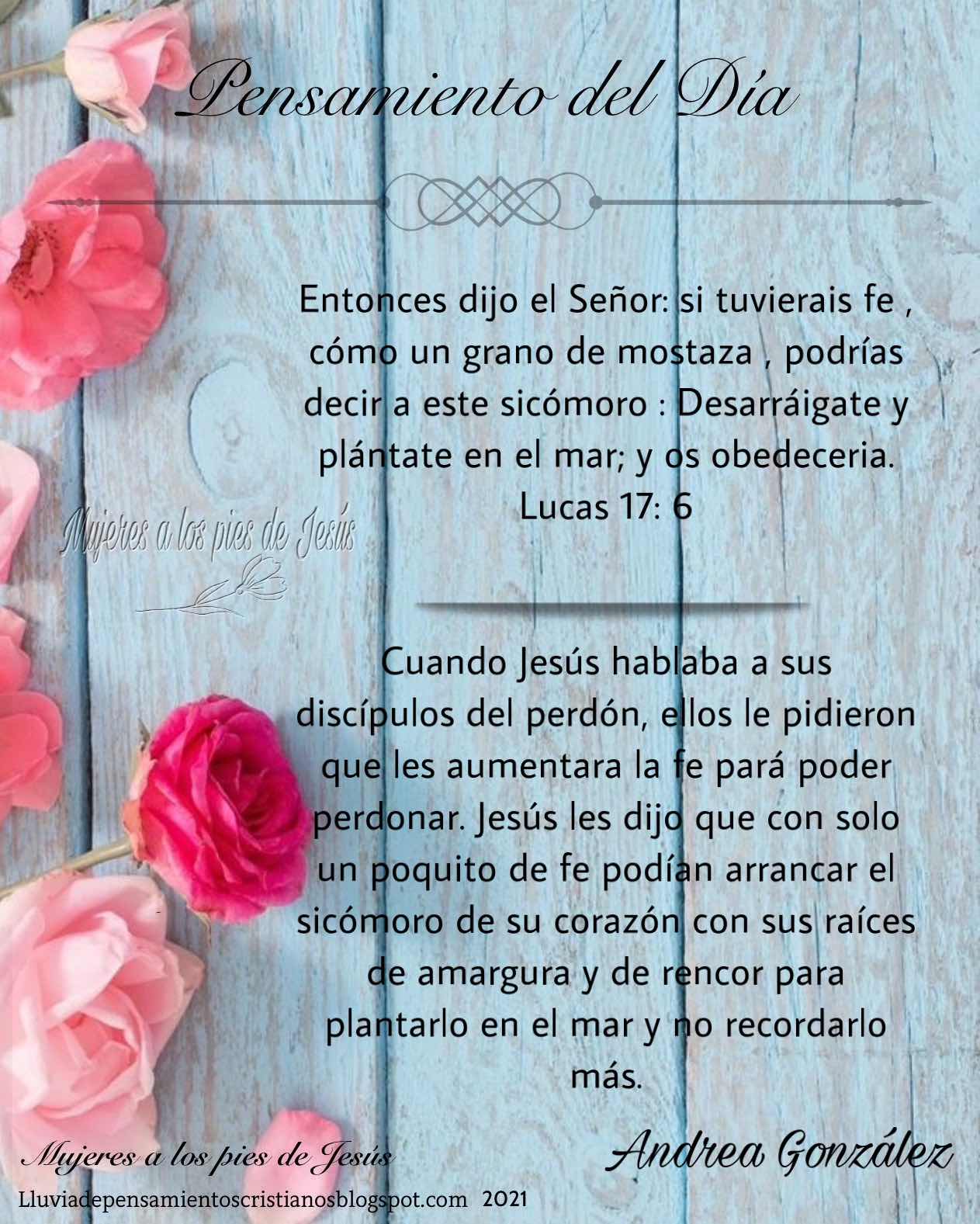 Cuando Jesús hablaba a sus discípulos del perdón, ellos le pidieron que les aumentara la fe pará poder perdonar. Jesús les dijo que con solo un poquito de fe podían arrancar el sicómoro de su corazón con sus raíces de amargura y de rencor para plantarlo en el mar y no recordarlo más.