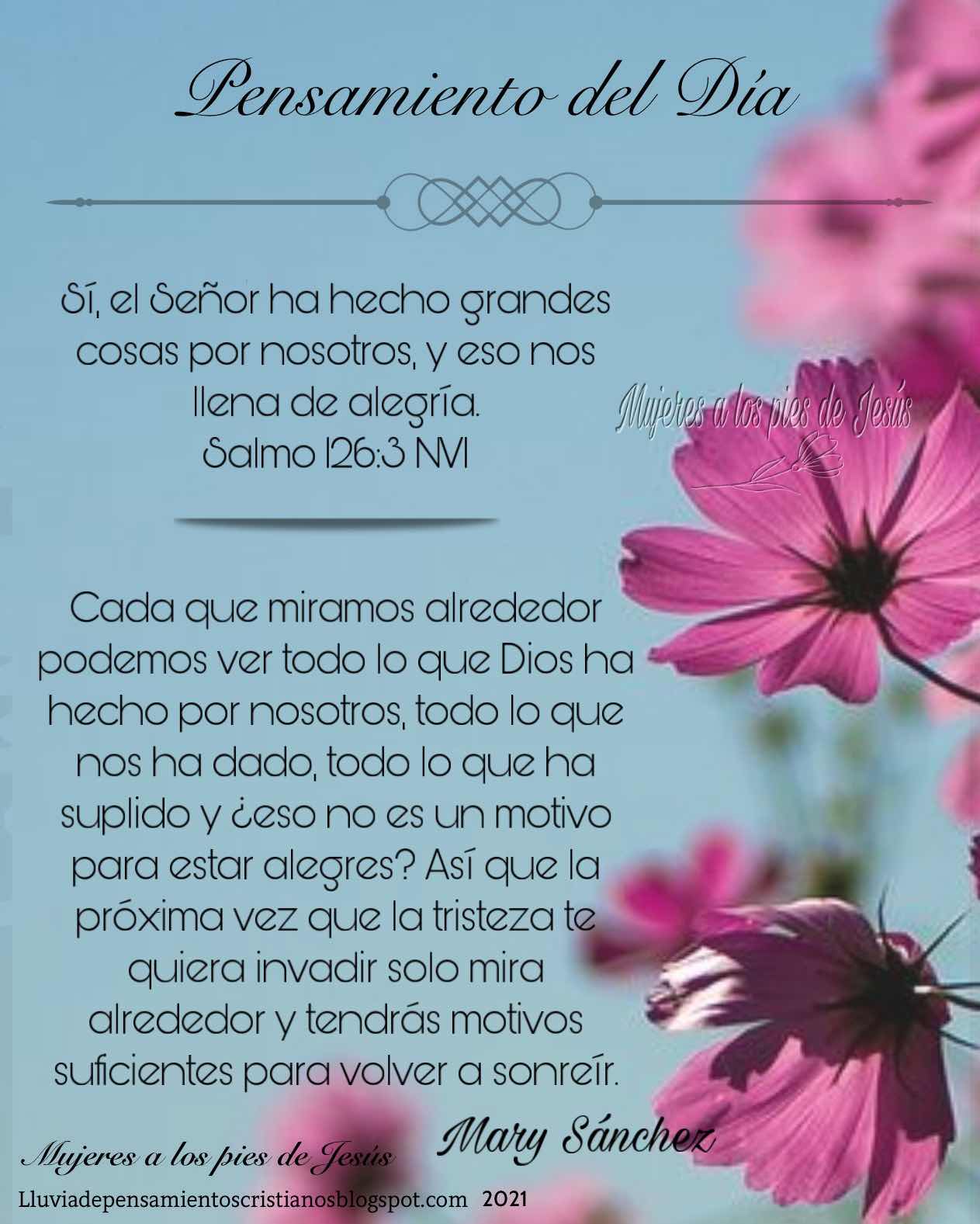 Sí, el Señor ha hecho grandes cosas por nosotros, y eso nos llena de alegría. Salmo 126:3 NVI