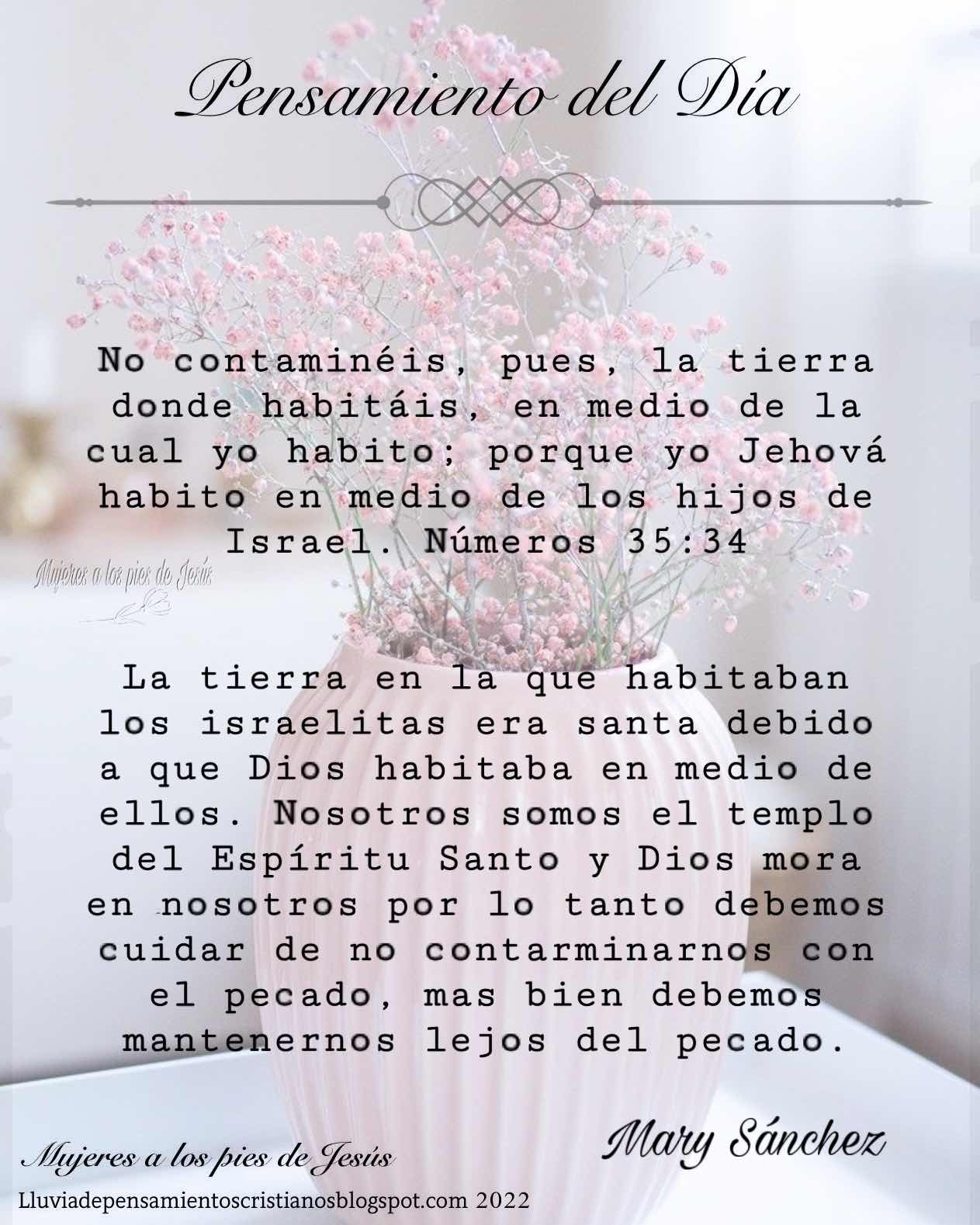 No contaminéis, pues, la tierra donde habitáis, en medio de la cual yo habito; porque yo Jehová habito en medio de los hijos de Israel.