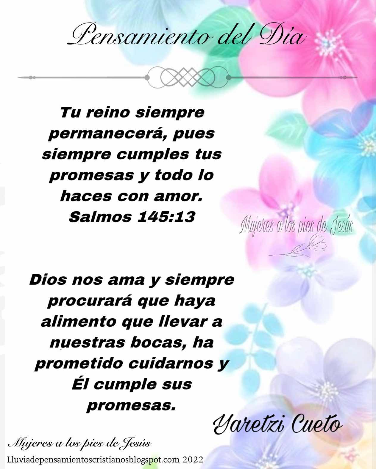 Tu reino siempre permanecerá, pues siempre cumples tus promesas y todo lo haces con amor. Salmos 145:13