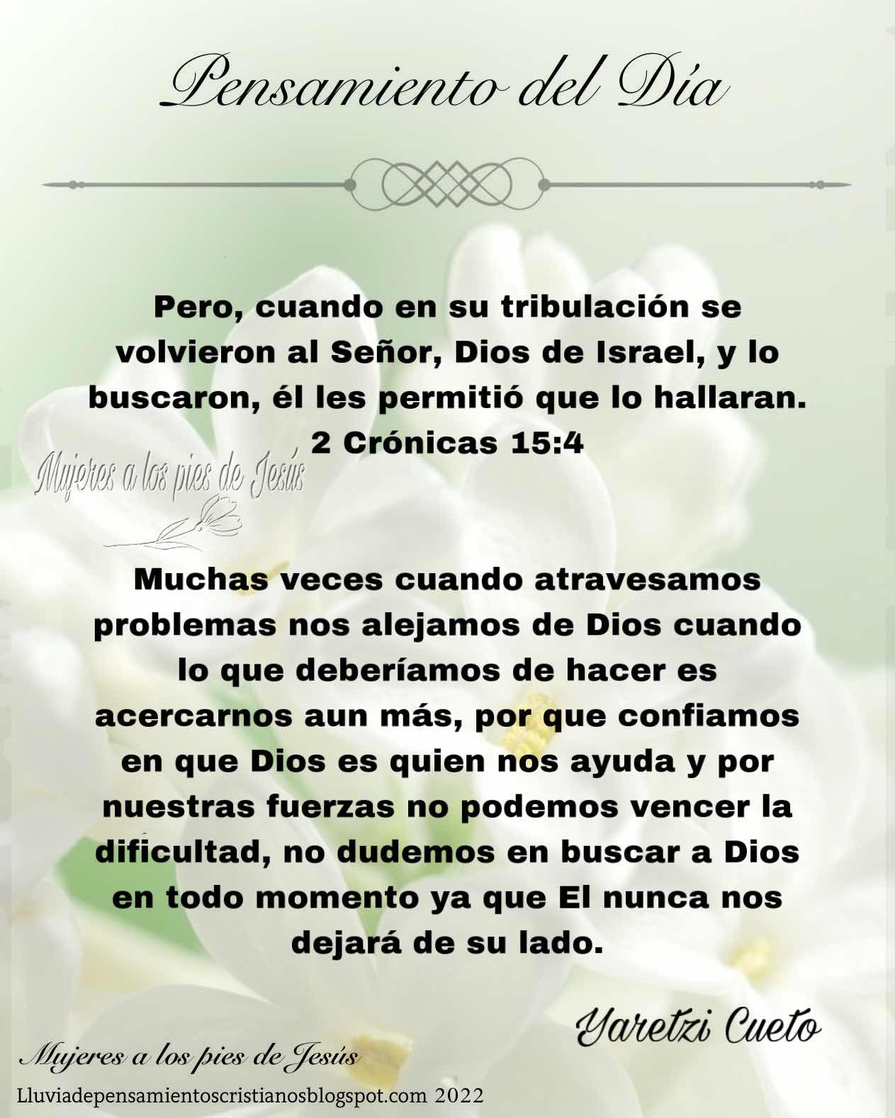 Muchas veces cuando atravesamos problemas nos alejamos de Dios cuando lo que deberíamos de hacer es acercarnos aun más, por que confiamos en que Dios es quien nos ayuda y por nuestras fuerzas no podemos vencer la dificultad, no dudemos en buscar a Dios en todo momento ya que El nunca nos dejará de su lado.