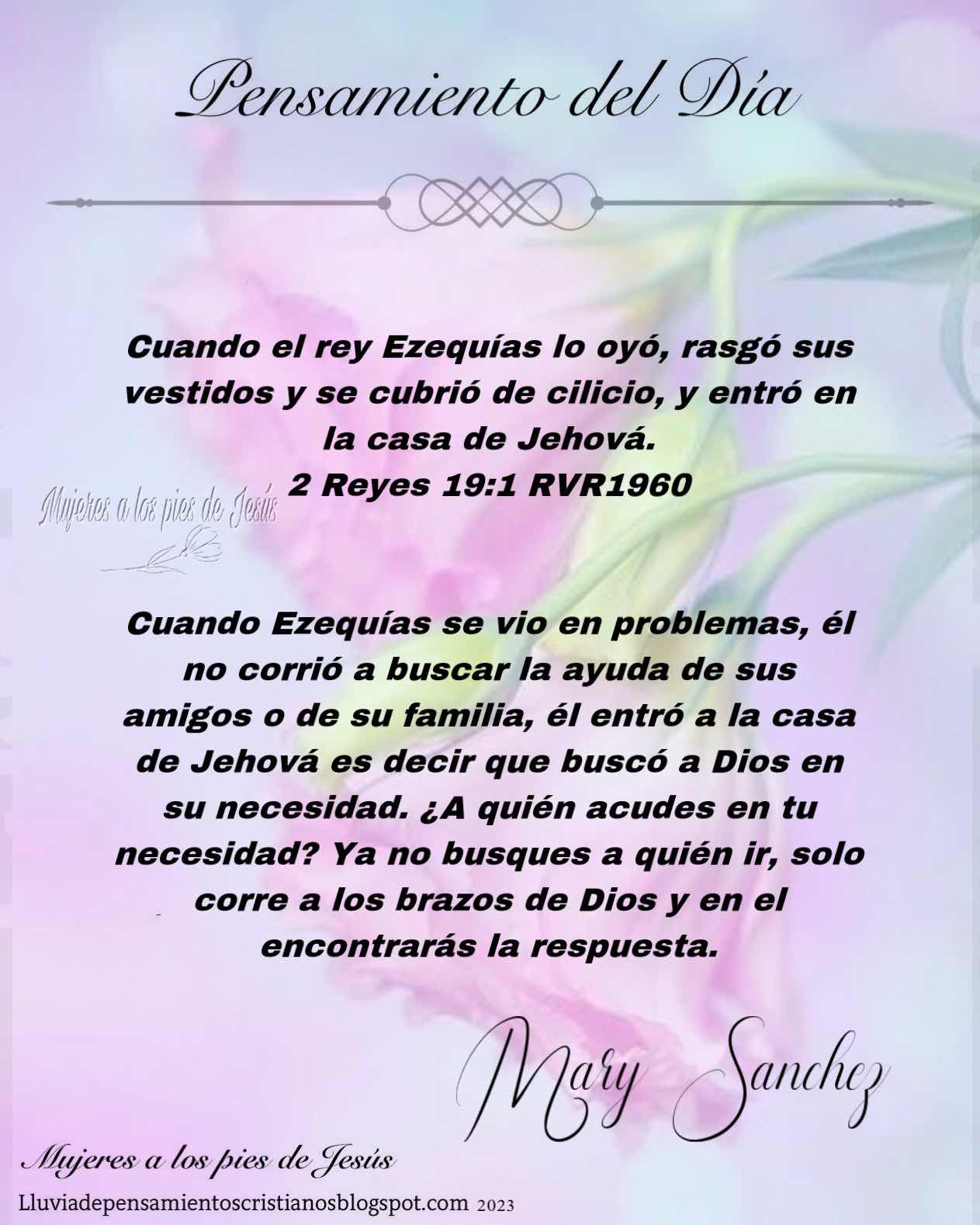 Cuando Ezequías se vio en problemas, él no corrió a buscar la ayuda de sus amigos o de su familia, él entró a la casa de Jehová es decir que buscó a Dios en su necesidad. ¿A quién acudes en tu necesidad? Ya no busques a quién ir, solo corre a los brazos de Dios y en el encontrarás la respuesta.