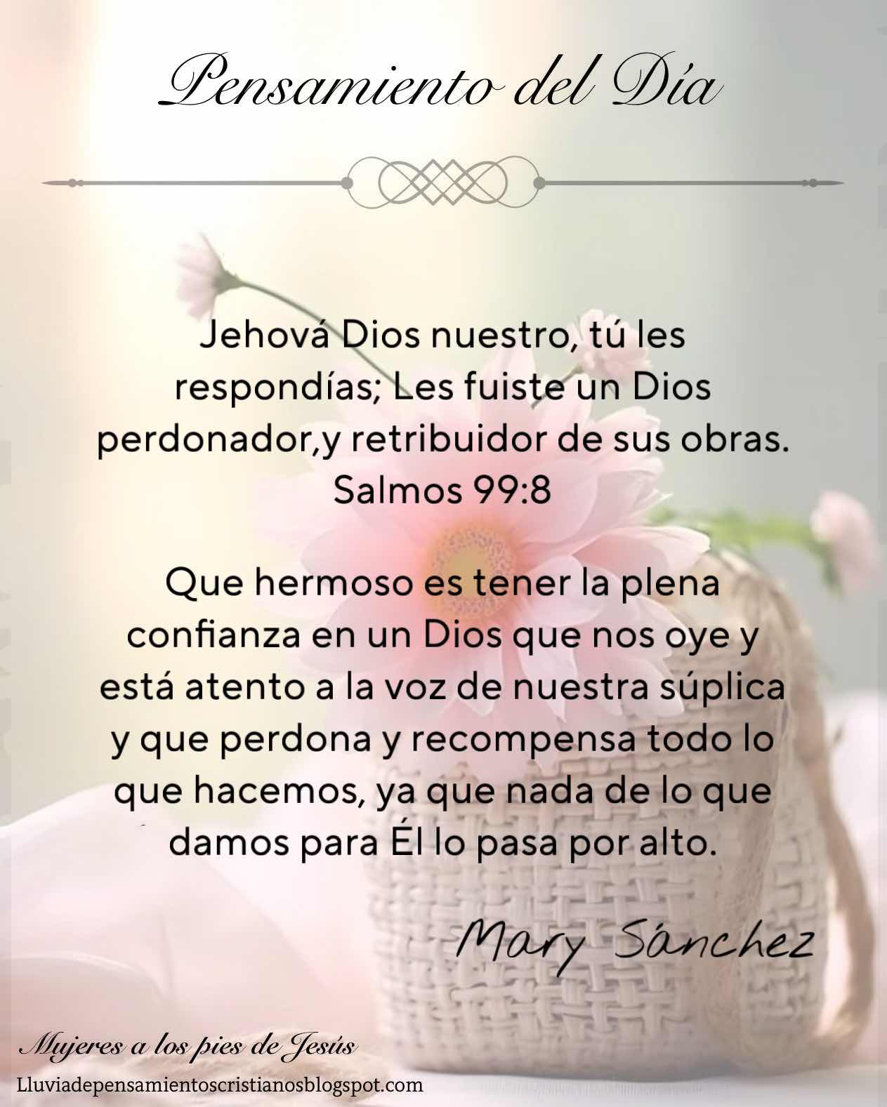 Que hermoso es tener la plena confianza en un Dios que nos oye y está atento a la voz de nuestra súplica y que perdona y recompensa todo lo que hacemos, ya que nada de lo que damos para Él lo pasa por alto.