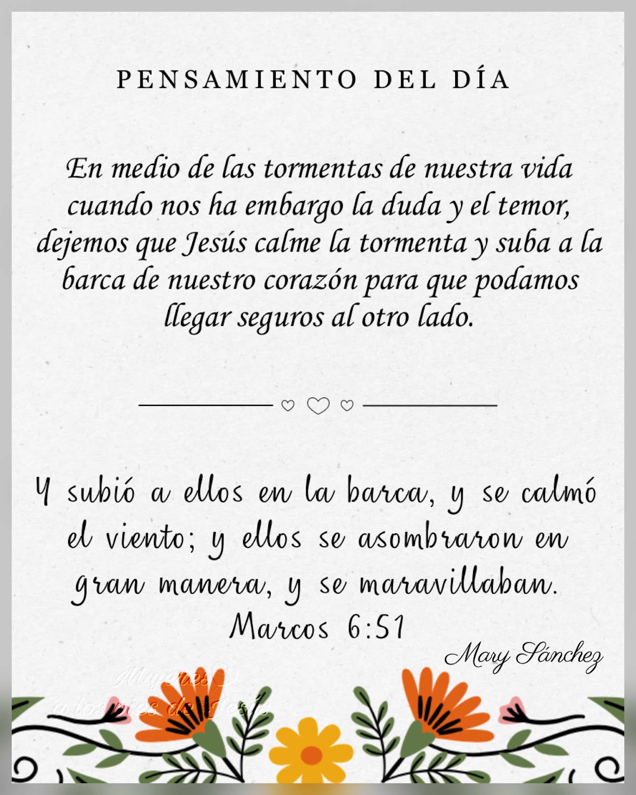 En medio de las tormentas de nuestra vida cuando nos ha embargo la duda y el temor, dejemos que Jesús calme la tormenta y suba a la barca de nuestro corazón para que podamos llegar seguros al otro lado.